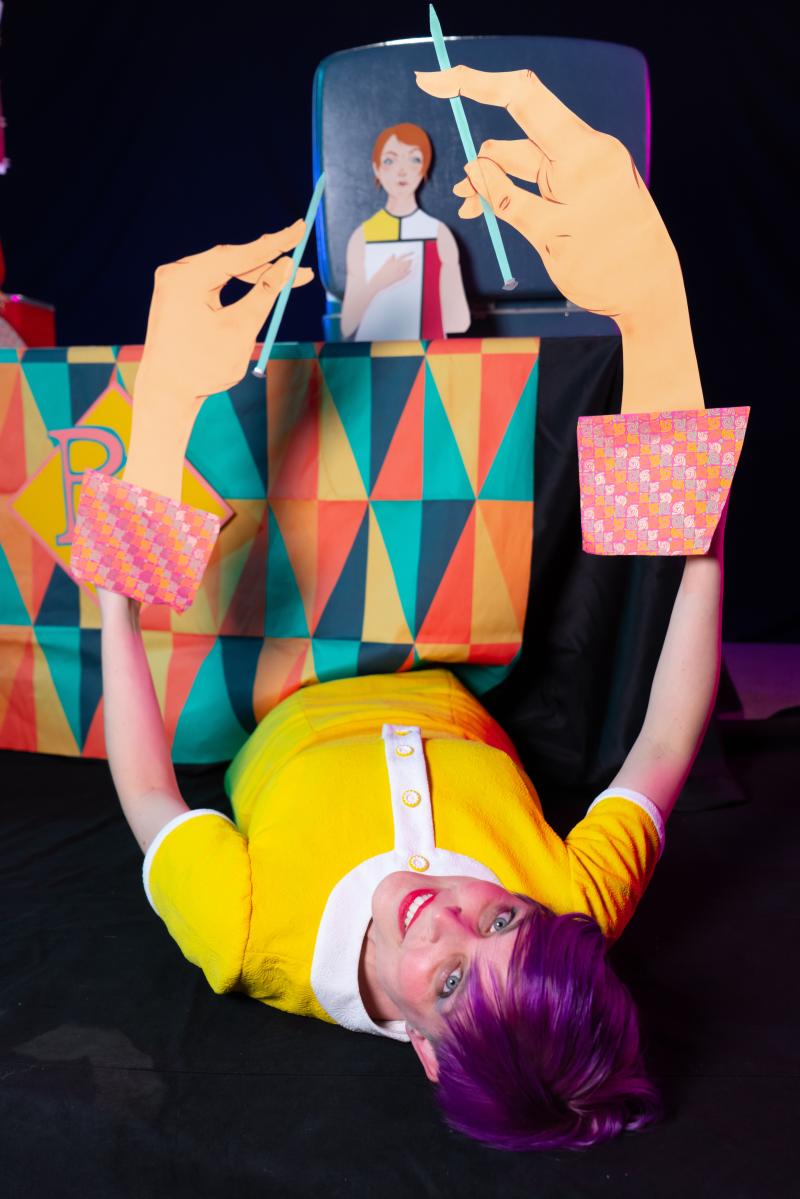 She Thinks She’s Queen Elizabeth But She’s Dirty Gerts To Me by PuppetKabob is a paper doll and pop-up extravaganza: a groovy blend of historical fiction, 60s pop culture, and colorful confetti in a one-of-a-kind show for families. Come on, get happy!—with middle schooler Carol Lee Bell as she finds the fold to fitting in and discovers the best way is to not actually fit at all!